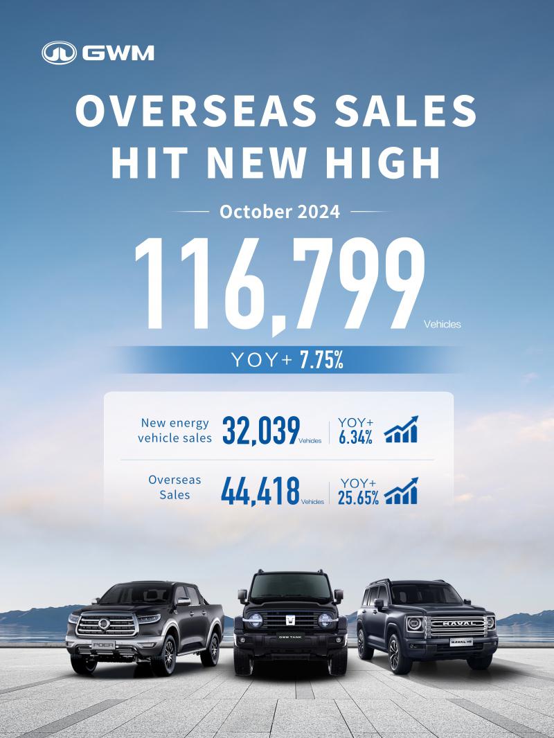 On November 1, GWM Co., Ltd. (Stock Code: 601633.SH, 02333.HK, 82333.HK; hereinafter referred to as "GWM") released its sales data for October 2024.